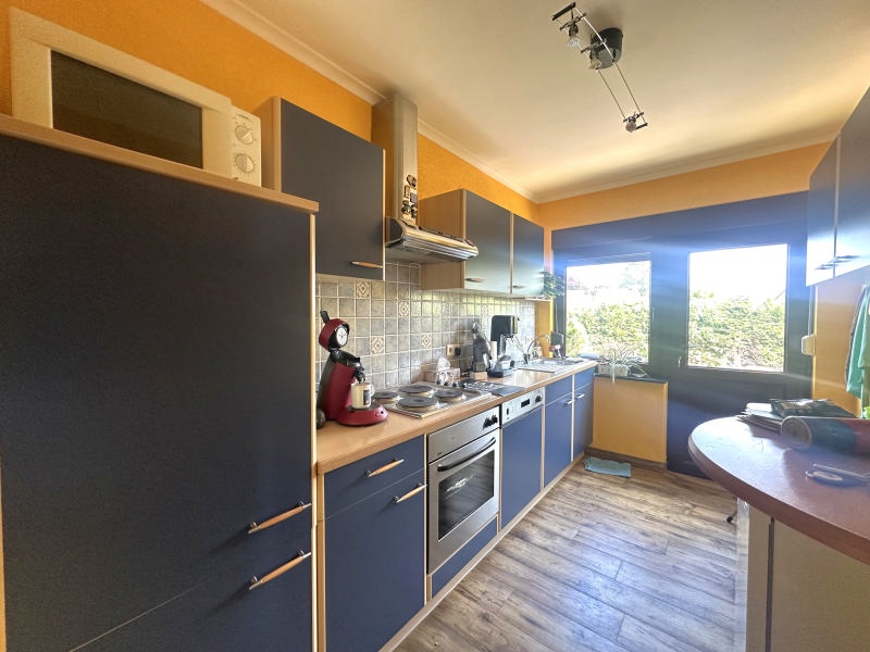 Agréable appartement (+/- 97 m² d'après PEB) 2 chambres, balcon et garage privatif idéalement situé au 2ème et dernier étage d'une résidence au centre de Blegny et de toutes ses commodités. Cet appartement se compose comme suit : hall d'entrée avec toilette indépendante et vestibule, lumineux séjour (+/- 31 m²), cuisine équipée (taque électrique, four, hotte, frigo, lave-vaisselle, évier), 2 chambres (+/- 9 et 12 m²), salle de douches (douche à litalienne, lavabo). Cet appartement dispose également dun garage privatif, d'un balcon, d'une cave commune et d'un jardin commun. PEB : C, E spéc: 188.kWh/m².an, E totale : 18.217 kWh/an, n°20250526014715. Châssis double vitrage PVC avec volets électriques en partie, chauffage central mazout (avec calorimètre), 2 climatiseurs réversibles, parlophone, électricité conforme, compteurs eau et électricité séparés ! R.C : 619 €. Charges communes : +/- 220€/mois (qui comprend honoraires syndic, jardinier, fond de réserve, provision pour le chauffage, ...). Belle situation au centre de Blegny ! Idéal pour investissement ou premier achat ! Informations données à titre indicatif et non contractuelles. www.waucomont.be