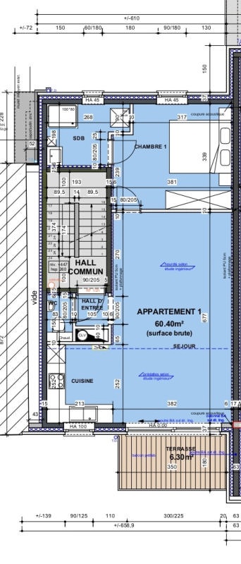 Situé au premier étage du 1er immeuble du Clos du Parc, l'appartement "A1" (+/-60,40 m² brut hors terrasse selon plan) est composé d'un hall d'entrée, d'un lumineux séjour avec un espace cuisine ouvert et accès direct vers la terrasse à rue orientée sud-ouest, wc indépendant, salle de douches et une chambre. Isolés aux normes actuelles, thermiques et acoustiques, les bâtiments vous offrent un confort optimal et une économie d'énergie. Les appartements sont vendus hors peinture, cuisine et mobilier de salle de bains. Chaudière à condensation au gaz ou pompe à chaleur, compteurs séparés, double vitrage PVC. Références PEB: RWPEB-073129. Prix hors frais (TVA 21%, frais de raccordements, honoraires notariaux et frais d'acte de base). Contactez-nous pour visiter votre futur investissement! Plus d'informations disponibles sur demande à info@waucomont.be. Informations données à titre indicatif et non contractuelles. www.waucomont.be