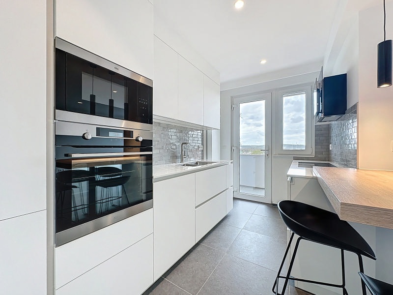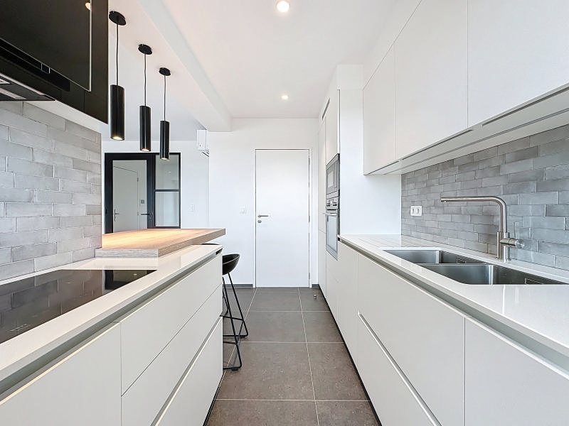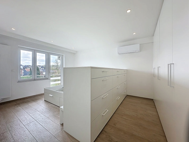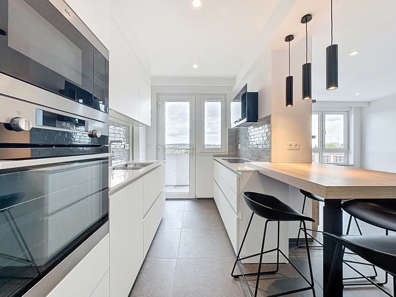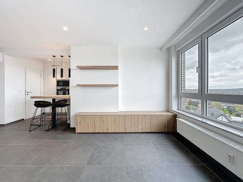 Agréable et fonctionnel appartement entièrement rénové (+/- 79m² d'après PEB) 1 chambre + dressing idéalement situé au 5ème étage d'un immeuble du centre de Visé et se composant comme suit: hall d'entrée, lumineux séjour (+/- 24m²) avec cuisine équipée (frigo, taque induction, four, hotte, micro-ondes, lave-vaisselle) et accès au balcon, 1 chambre (+/- 19m²) avec dressing et accès à la terrasse arrière, salle de douches (douche italienne, meuble lavabo), espace buanderie, toilette indépendante. Possibité d'avoir un garage en supplément. Châssis double vitrage PVC, climatisation dans le séjour et la chambre, adoucisseur d'eau, vidéophone et assenceur. PEB: B, E spéc: 154 kWh/m².an, E totale: 12.249 kWh/an, n°20211123003895 . Loyer demandé: 890€/mois + provision 140€/mois pour les charges communes y compris le chauffage privatif + 10/mois pour l'entretien de l'adoucisseur d'eau. Libre le 1er mai 2026. Belle situation au centre de Visé, à proximité de la gare et des écoles ! Informations données à titre indicatif et non contractuelles. www.waucomont.be