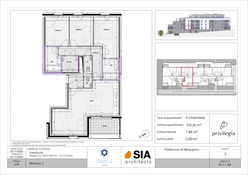 ACTION BATIBOUW - Cuisine équipée et appareils sanitaires offerts (valable pour tout engagement avant le 31 mars 2026) ! Projet exceptionnel érigé à proximité de l'hôpital du MontLégia. Privilégia vous propose cet APPARTEMENT 3 CH. (+/- 103 m² d'après plan) situé au 1er étage: hall d'entrée, séjour avec cuisine ouverte et une baie de fenêtre s'ouvrant vers une terrasse orientée Nord-Ouest (+/- 7 m²), 3 chambres dont une avec salle de bains, salle de bains, local technique/buanderie et 2 wc indépendants. L'appartement est vendu achevé à l'exception des peintures et luminaires (cuisine incluse). Des emplacements de parking en sous-sol et des caves sont proposés en supplément. Néanmoins, de spacieux espaces sécurisés et aménagés sont disponibles et libre d'accès aux occupants pour les vélos. Chauffage sol et rafraîchissement via un réseau de chaleur ( alternative écologique aux climatisations actuelles). Compteurs individuels (eau et électricité), châssis double vitrage PVC, ventilation double flux, porte d'entrée individuelle anti-effraction, vidéophone. Référence PEB: RWPEB-135259. Prix hors frais (TVA 21%, droits d'enregistrements sur le terrain, frais de raccordements, honoraires notariaux et frais d'acte de base). N'hésitez pas à nous contacter pour fixer une visite ! Plus d'informations disponibles sur demande à info@waucomont.be. Informations données à titre indicatif et non contractuelles. www.waucomont.be