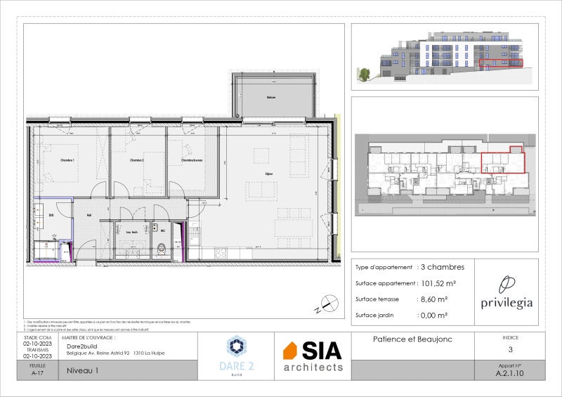 ACTION BATIBOUW - Cuisine équipée et appareils sanitaires offerts (valable pour tout engagement avant le 31 mars 2026) ! Projet exceptionnel érigé à proximité de l'hôpital du MontLégia! Privilégia vous propose cet APPARTEMENT 3CH (+/- 101 m² d'après plans) situé au 1er étage: spacieux hall d'entrée, séjour avec cuisine ouverte et une baie de fenêtre s'ouvrant vers une terrasse orientée Sud-Est (+/- 8 m²), 3 chambres (ou 2 chambres et 1 bureau), salle de bains, local technique/buanderie et wc indépendant. L'appartement est vendu achevé à l'exception des peintures et luminaires (cuisine incluse). Des emplacements de parking en sous-sol et des caves sont proposés en supplément. Néanmoins, de spacieux espaces sécurisés et aménagés sont disponibles et libre d'accès aux occupants pour les vélos. Chauffage sol et rafraîchissement via un réseau de chaleur (alternative écologique aux climatisations actuelles), compteurs individuels (eau et électricité), châssis double vitrage PVC, ventilation double flux, porte d'entrée individuelle anti-effraction, vidéophone. Référence PEB: RWPEB-135259. Prix hors frais (TVA 21%, droits d'enregistrements sur le terrain, frais de raccordements, honoraires notariaux et frais d'acte de base). N'hésitez pas à nous contacter pour fixer une visite ! Plus d'informations disponibles sur demande à info@waucomont.be. Informations données à titre indicatif et non contractuelles. www.waucomont.be