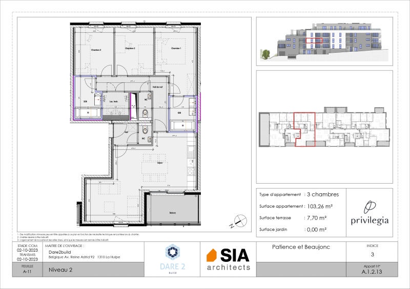 ACTION BATIBOUW - Cuisine équipée et appareils sanitaires offerts (valable pour tout engagement avant le 31 mars 2026) ! Projet exceptionnel érigé à proximité de l'hôpital du MontLégia! Privilégia vous propose cet APPARTEMENT 3CH (+/- 103 m² d'après plan) situé au 2ème étage: hall d'entrée, séjour avec cuisine ouverte et une baie de fenêtre s'ouvrant vers une terrasse orientée Nord-Ouest (+/- 7 m²), 3 chambres dont une avec salle de bains, salle de bains, local technique/buanderie et wc indépendant. L'appartement est vendu achevé à l'exception des peintures et luminaires (cuisine incluse). Des emplacements de parking en sous-sol et des caves sont proposés en supplément. Néanmoins, de spacieux espaces sécurisés et aménagés sont disponibles et libre d'accès aux occupants pour les vélos. Chauffage sol et rafraîchissement via un réseau de chaleur (alternative écologique aux climatisations actuelles), compteurs individuels (eau et électricité), châssis double vitrage PVC, ventilation double flux, porte d'entrée individuelle anti-effraction, vidéophone. Référence PEB: RWPEB-135259. Prix hors frais (TVA 21%, droits d'enregistrements sur le terrain, frais de raccordements, honoraires notariaux et frais d'acte de base). N'hésitez pas à nous contacter pour fixer une visite ! Plus d'informations disponibles sur demande à info@waucomont.be. Informations données à titre indicatif et non contractuelles. www.waucomont.be