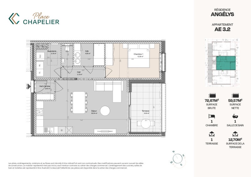 Accessible via la rue de la Clef, la Résidence Angélys propose 13 appartements dont celui-ci situé au 3ème étage, le "E 3.2" de +/- 72 m² (surface brute) avec un extérieur de +/- 12 m² (surface nette). PLAN SUR DEMANDE. Certifiée PEB A+, la résidence répond aux normes les plus exigeantes en matière de performances énergétiques, ce qui permet d'assurer un confort de vie optimal et une consommation énergétique insignifiante. Nombreux parkings intérieurs et extérieurs disponibles ainsi que des caves individuelles. Parking vélos. Les appartements sont vendus achevés (hors peinture et luminaires). Les cuisines de qualité sont équipées et comprises dans le prix de vente. Pompe à chaleur individuelle, chauffage sol, ventilation double flux et compteurs séparés (eau et électricité). Référence PEB: RWPEB-105437. Prix hors frais (TVA 21%, droits d'enregistrement sur la quotité terrain, frais de raccordements, honoraires notariaux et frais d'acte de base). RC non attribué. N'hésitez pas à nous contacter pour fixer une visite ! Plus d'informations disponibles sur demande à info@waucomont.be. Informations données à titre indicatif et non contractuelles. www.PLACECHAPELIER.be
