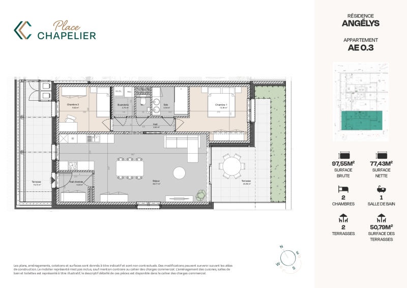 Accessible via la Rue de la Clef, la Résidence Angélys propose 13 appartements dont celui-ci situé au rez-de-chaussée, le "E 0.3", de +/- 97 m² (surface brute) avec un extérieur de +/- 50 m² (surface nette). PLAN SUR DEMANDE. Certifiée PEB A+, la résidence répond aux normes les plus exigeantes en matière de performances énergétiques, ce qui permet d'assurer un confort de vie optimal et une consommation énergétique insignifiante. Nombreux parkings intérieurs et extérieurs disponibles ainsi que des caves individuelles. Parking vélos. Les appartements sont vendus achevés (hors peinture et luminaires). Les cuisines de qualité sont équipées et comprises dans le prix de vente. Pompe à chaleur individuelle, chauffage sol, ventilation double flux et compteurs séparés (eau et électricité). Référence PEB: RWPEB-105439. Prix hors frais (TVA 21%, droits d'enregistrement sur la quotité terrain, frais de raccordements, honoraires notariaux et frais d'acte de base). RC non attribué. N'hésitez pas à nous contacter pour fixer une visite ! Plus d'informations disponibles sur demande à info@waucomont.be. Informations données à titre indicatif et non contractuelles. www.PLACECHAPELIER.be
