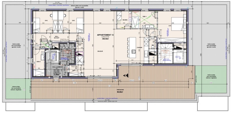 Situé au troisième étage du 3ème immeuble du Clos du Parc, le penthouse "A13" (+/- 158,10 m² brut hors terrasse selon plan) est composé d'un hall d'entrée, d'un lumineux séjour avec un espace cuisine ouvert et accès direct vers la terrasse orientée sud-ouest, 2 wc indépendants, 2 salles de douches, buanderie et trois chambres. Isolés aux normes actuelles, thermiques et acoustiques, les bâtiments vous offrent un confort optimal et une économie d'énergie. Les appartements sont vendus hors peinture, cuisine et mobilier de salle de bains. Chaudière à condensation au gaz ou pompe à chaleur, compteurs séparés, double vitrage PVC, ascenseurs. Référence PEB: RWPEB-073129. Prix hors frais (TVA 21%, frais de raccordement, honoraires notariaux et frais d'acte de base). Contactez-nous pour visiter votre futur investissement ! Plus d'informations disponibles sur demande à info@waucomont.be. Informations données à titre indicatif et non contractuelles. www.waucomont.be