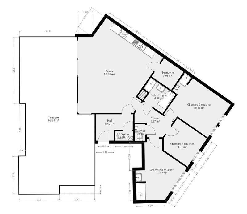 Lumineux penthouse (+/- 138 m² d'après PEB) situé dernier étage d'une résidence au centre de Hermée bénéficiant d'une spacieuse terrasse orientée plein Sud. Il se compose comme suit: spacieux hall d'entrée avec toilette indépendante, lumineux séjour comprenant l'espace cuisine et vitrage coulissant vers la terrasse de +/- 69 m², buanderie, hall de nuit desservant une salle de bains (bain et douche séparée), une toilette et 3 chambres dont deux avec espace douche privatif. L'appartement bénéficie également d'une cave et d'un garage privatifs au sous-sol et d'un emplacement de parking extérieur. L'appartement a été entièrement rafraichi. Chauffage sol et radiateurs dans les chambres (chaudière à condensation au gaz naturel), ventilation simple flux, châssis double vitrage PVC, compteurs individuels. Charges communes: +/- 180 €/mois. PEB : B, E spec: 97 kWh/m².an, E totale: 13 341 kWh/an n° 20170927505080. R.C. : 1.000€. Opportunité à saisir dans la région! Proche de toutes les commodités et des axes autoroutiers! Informations données à titre indicatif et non contractuelles. www.waucomont.be