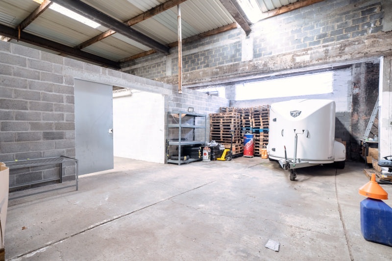 LOT 1 : un entrepôt (+/- 360m² au sol) et un espace extérieur (+/-100m²) accessible grâce à des portes sectionnelles. L’entrepôt propose actuellement 5 boxes loués pour un montant total de +/- 1.000€/mois. RC : 1.385€. Superficie totale (terrain) : 576m². Revenu panneau publicitaire fixé sur l’entrepôt : 5.000€/an.