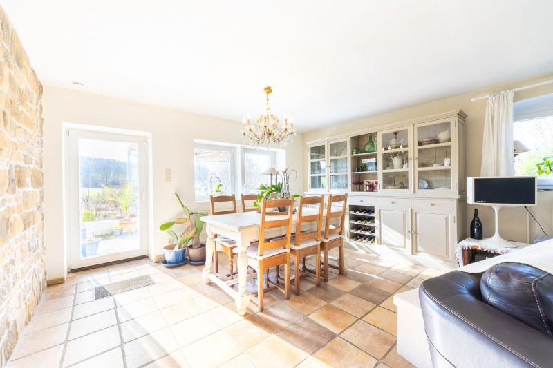 Superbe propriété orientée plein Sud comprenant une maison de type "longère"et un appartement sur un vaste terrain en partie aménagé avec une vue époustouflante sur la nature située à Louveigné (Sprimont). Pleine de charme, la vaste maison ( +/- 232 m² d'après PEB) comprend: Au Rez-de-chaussée: hall d'entrée, lumineux et chaleureux séjour avec poêle à bois et accès vers une 1ère terrasse, cuisine équipée (avec cuisinière Lacanche) avec accès à 2 caves empiérées, salle à manger avec accès jardin, piscine et 2ème terrasse, débarras et salle de douches avec wc. A l'Etage: spacieux palier aménagé en espace télé et bureau, une chambre double et une suite parentale (dressing, vaste chambre et salle de bains avec wc).L'appartement (+/-97m² d'après PEB) actuellement loué 500€/mois comprend: entrée indépendante, séjour avec cuisine ouverte et poêle à pellets, local technique, salle de douches avec wc, espace nuit aménagé en mezzanine.Châssis double vitrage bois et PVC, système d'alarme, chaudière gaz à condensation Vaillant, panneaux photovoltaïques, double garage, portail électrique. R.C: 1098 €, Superficie totale terrain: 7.402 m² (en cours de bornage). PEB:C (maison) et F disponibles sur demande. Magnifique bien coup de coeur! Informations données à titre indicatif et non contractuelles. www.waucomont.be