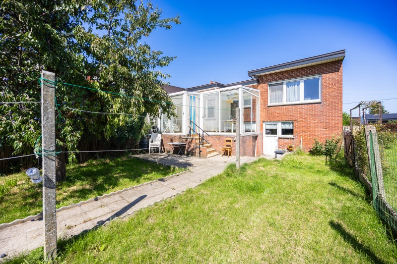 Idéalement située à Retinne, agréable maison semi-mitoyenne (+/- 96 m² d'après PEB) 2 chambres, garage, terrasse et jardin avec un terrain de +/- 262m² en zone d'habitat offrant de nombreuses possibilités. Elle se compose comme suit : Sous-sol : spacieux garage (+/- 39 m²) avec porte sectionelle motorisée, vide-ventilés (+/- 42m²). Entresol : hall d'entrée, lumineux séjour (+/- 29 m²) avec un feu ouvert, cuisine équipée (taque vitrocéramique, four, hotte, frigo, évier), véranda (+/- 13m²), terrasse et beau jardin. 1er étage : 2 chambres (+/- 10 et 13m²), salle de douches (douche italienne, wc, lavabo). Chauffage central au mazout, châssis double vitrage PVC et bois avec volets électriques en partie. PEB : G, Spec: 637 kWh/m2.an, E totale : 61 175kWh/an, n° 20250811019032. R.C. (maison + terrain) : 899€. Superficie totale (terrain + maison) : 518m². La partie de terrain située à gauche lorsqu'on est face à la maison (+/- 262m², largeur façade à rue +/- 9 m). Opportunité à saisir ! A découvrir au plus vite ! Informations données à titre indicatif et non contractuelles. www.waucomont.be.
