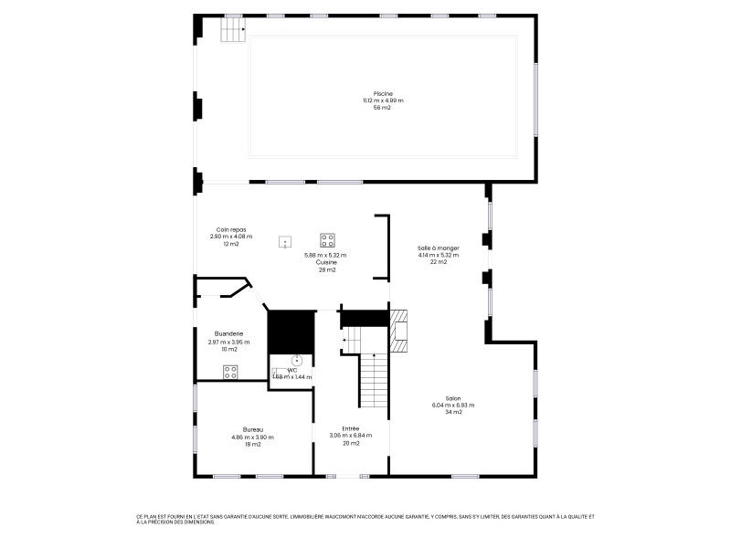 Située dans un agréable endroit calme à Saive, magnifique villa de 2007 (+/- 417m² daprès PEB) avec piscine intérieure, 3 chambres, bureau, terrasse et jardin. Elle se compose comme suit : Sous-sol : vaste garage pour plusieurs véhicules avec porte sectionnelle motorisée, cave à vin et chaufferie. Rez-de-chaussée : spacieux hall dentrée (+/- 20 m²), wc indépendant,agréable séjour avec cassette à bois (+/- 56 m²), cuisine ouverte équipée avec coin repas (+/- 40 m²) (taque gaz et vitrocéramique, hotte, four, frigo, lave-vaisselle, chauffe-plat), arrière cuisine (+/- 10 m²), piscine intérieure (11,12m x 4,99m) avec bel espace en mezzanine (+/- 34 m²), terrasse et jardin. 1er étage : hall de nuit, 3 chambres +/- 14, et 2 de 17 m² dont une avec coin dressing), salle de bains (baignoire, douche, lavabo). Grenier pouvant être utilisé comme salle de loisirs (salle cinéma), bureau,dressing. Chauffage central mazout, châssis double vitrage PVC, système dalarme, citerne d'eau de pluie +/- 2.500L, portail électrique. PEB : C, E Spéc: 209 kWh/m².an, E totale: 87.078kWh/an, n° 20250610013084. R.C. : 2.596€, Superficie totale : 1.174m².Informations et plans donnés à titre indicatif et non contractuels. Opportunité rare! Agréable endroit calme! www.waucomont.be.