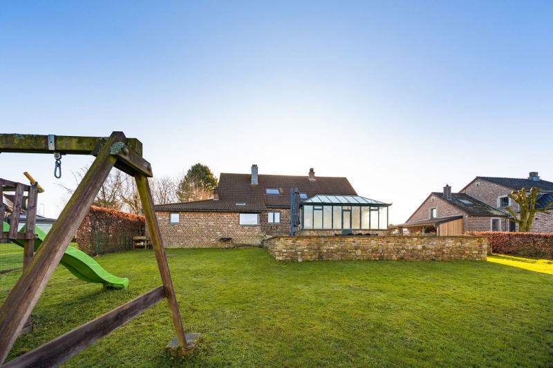 Magnifique villa (+/- 280m² daprès PEB), 4 à 5 chambres, garage, terrasse et jardin, idéalement située sur les hauteurs de Cornesse. Elle se compose comme suit : Rez-de-chaussée : hall dentrée (+/-8m²) avec WC indépendant, spacieux séjour (+/-39m²) avec accès direct à la cuisine équipée (+/-23m²) (lave-vaisselle, taque vitrocéramique, hotte, four) et à la véranda (+/-25m²), buanderie (+/- 12m²), espace rangement/dressing avec un coin douches (+/- 7m²), une chambre ou un bureau +/- (14m²) et un garage (+/- 38m²). 1er étage : 4 chambres (3 de +/- 10m² et une de +/-16m²), hall de nuit (+/- 17m²) avec espace bureau, salle de bains (baignoire, double lavabo et wc) et un espace rangement (+/- 10m²). Sous-sol : spacieuses caves (+/- 10, 11, 18 et 23m²). A lextérieur : magnifique terrasse avec vue exceptionnelle et un joli jardin arboré à labri des regards. Chauffage central mazout (chaudière à condensation, châssis double vitrage PVC et aluminium, poêle à pellets, cassette à bois, panneaux photovoltaïques. PEB: C, E. spéc.: 251kWh/m².an, E. totale: 70.275 kWh/an, n° 20260209007720. R.C.: 1.125€, superficie totale: 1.455 m². Informations données à titre indicatif et non contractuelles. Superbe propriété située dans un quartier prisé de Cornesse! www.waucomont.be