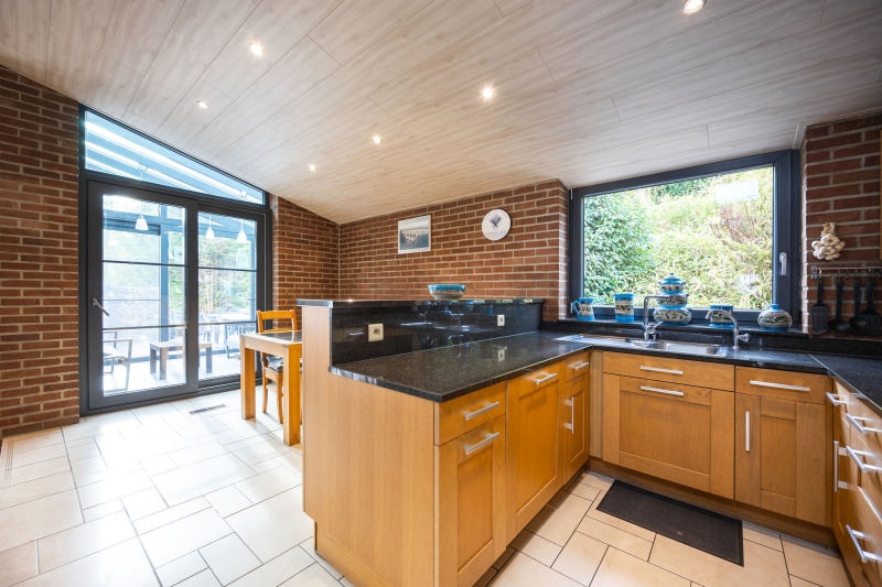 Magnifique villa (+/-144m² daprès PEB), 3 chambres avec double garage, terrasse avec vue dégagée et jardin arboré, idéalement située dans une rue calme à 5 minutes du centre de Visé. Elle se compose comme suit : Rez-de-chaussée : hall dentrée, une chambre à coucher (+/- 18m²), spacieux double garage (+/- 45m²) et une cave (+/-14m²). Au 1er étage : vaste séjour (+/-46m²), cuisine équipée (four, micro-ondes, taque vitrocéramique, hotte, frigo et lave-vaisselle), véranda (+/- 7m²) avec accès direct à une terrasse (+/-34m²), hall de nuit avec espace bureau, toilette indépendants, salle de douche (douche et lavabo) et 2 chambres (+/- 10 et 15m²). Chauffage via pompe à chaleur et poêle à pellets, 20 panneaux photovoltaïques, châssis PVC double vitrage, électricité non conforme. PEB : C, E Spéc: 224kWh/m².an, E totale 32.232kWh/an, n° 20251110009653. R.C. : 1.291€, Superficie totale (terrain) : 1995m². Informations données à titre indicatif et non contractuelles. Villa coup de cur ! A découvrir ! www.waucomont.be