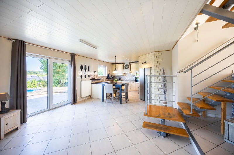 Spacieuse villa (+/- 235m² d'après PEB) 4 chambres avec vaste espace avec entrée indépendante (+/- 48m²)idéal pour profession libérale offrant de nombreuses possibilités d'aménagement et située dans une rue calme, à Soumagne. Elle se compose comme suit: Sous-sol: caves. Rez-de-chaussée: hall d'entrée, lumineux séjour (+/- 48m²) avec cuisine équipée ouverte (frigo, lave-vaisselle, taque vitrocéramique, hotte, four, micro-ondes), buanderie, garage (+/- 15m²) avec porte sectionnelle motorisée, terrasse (+/- 75m²), piscine et espace idéal pour profession libérale (+/- 48m²) avec toilette et entrée indépendante. 1er étage: hall de nuit, 4 chambres (+/- 9, 13, 15 et 21m²) et salle de bains (baignoire, douche, double vasque, wc). Châssis double vitrage PVC, chauffage central au mazout (+ poêle à pellets dans le séjour), places de stationnement. PEB: D, E Spéc: 295 kWh/m².an, E totale : 69.358 kWh/an, n° 20250630002810. R.C.: 1.384€, superficie totale (terrain): 915 m². Belle situation ! Idéale pour profession libérale ! Informations données à titre indicatif et non contratuelles. www.waucomont.be