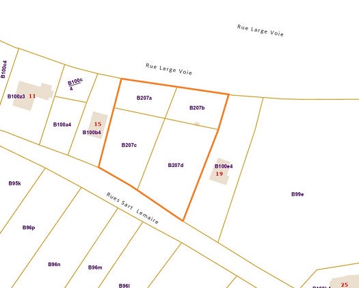 Belle parcelle de terrain de +/- 2.860 m² en zone d'habitat située sur les hauteurs de Tilff accessible par 2 rues. Largeur façade à rue (rue Large Voie) : +/- 53 m et largeur façade à rue (rue Sart Lemaire) : +/- 49m. Libre de constructeur! Cette parcelle ne fait pas partie d'un lotissement mais d'une division, il n'y a donc pas de prescriptions urbanistiques propres à un lotissement; il faudra toutefois respecter les prescriptions en vigueur (communale, régionale, ...). Tous les impétrants et raccordements (électricité, eau, traitement des eaux usées et pluviales, ...) et les éventuelles charges urbanistiques (frais de viabilisation, trottoir éventuel, ) sont à charge et aux frais de lacquéreur. Cette parcelle est située à 4130 Tilff, entre la rue Large Voie et la rue Sart Lemaire. Références cadastrales: Esneux, 2ème division Tilff, Section B, n° 207A, 207B, 207C et 207D. A ne pas manquer! Informations données à titre indicatif et non contractuelles. www.waucomont.be
