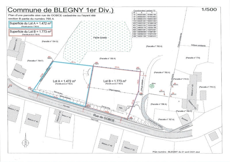 Belle parcelle de terrain (en grande partie plate) d'une superficie de +/- 1.472 m² (largeur à rue de +/- 50 mètres) en zone d'habitat à caractère rural dans une rue calme proche du centre de Blegny tout en bénéficiant d'un magnifique cadre verdoyant (reprise en bleu au plan de division dans les photos). Libre de constructeur ! Cette parcelle ne fait pas partie d'un lotissement mais d'une division, il n'y a donc pas de prescriptions urbanistiques propres à un lotissement; il faudra toutefois respecter les prescriptions en vigueur (communale, régionale, ...). Tous les impétrants et raccordements (électricité, eau, extensions éventuelles des réseaux deau et/ou délectricité, traitement des eaux usées et pluviales, ...) et les éventuelles charges urbanistiques (frais de viabilisation, trottoir éventuel, ) sont à charge et aux frais de lacquéreur (ainsi que les frais de bornage éventuels). Adresse: 4670 Blegny, rue de Gobcé (à droite du n° 69). Références cadastrales: Blegny, 1ère division: Trembleur, section B, partie de la parcelle n° 765A. Vente soumise à l'autorisation du juge de paix. Plus d'informations disponibles sur demande à info@waucomont.be. Informations données à titre indicatif et non contractuelles. Agréable endroit calme ! www.waucomont.be
