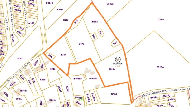 Ensemble de parcelles de terrain de +/- 27.209 m² situées en zone d'habitat à caractère rural et en zone agricoles situées dans le charmant village des Awirs. Ces parcelles sont accessibles par la Voie des Nonnes (à droite du n°38) largeur façade à rue +/- 7m et par la rue Bois Saint-Remacle (à gauche du n°14) largeur façade à rue +/- 15m. Ces parcelles ne font pas partie d'un lotissement, il n'y a donc pas de prescriptions urbanistiques propres à un lotissement. Il y aura toutefois lieu de respecter les prescriptions en vigueur (communales, régionales, ...). Le bien est libre de constructeur. Les frais liés à la viabilisation, aux impétrants (trottoir éventuel, électricité, eau, ...) sont à charge des acquéreurs. Références cadastrales: FLEMALLE, 5ème Division Awirs, Section B, n° 34E, 34H, 35, 37B, 38, 39A, 40, 42, 44, 45B et 47E. Adresse: 4400 Awirs, Voie des Nonnes (à droite du n°38) et rue Bois Saint-Remacle (à gauche du n°14). Belle situation verdoyante! Beau potentiel! Informations données à titre indicatif et non contractuelles. www.waucomont.be