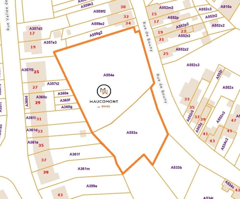 Bien située à Romsée, parcelle de terrain d'environ 4.803 m² en zone d'habitat et en zone d'habitat à caractère rural avec permis obtenu en 2024 pour la construction de 5 maisons (4 mitoyennes et 1 quatre façades). Largeur façade à rue +/- 74 m. Ces parcelles ne font pas partie d'un lotissement, il n'y a donc pas de prescriptions urbanistiques propres à un lotissement. Il y aura toutefois lieu de respecter les prescriptions en vigueur (communales, régionales, ...),. Libre de constructeur. Les frais liés à la viabilisation, aux impétrants (trottoir éventuel, électricité, eau, ...) sont à charge des acquéreurs.Références cadastrales: FLERON , 4ème Division Romsée, Section A, n° 553A et 554E. Adresse: 4624 Romsée, rue du Bouny, à gauche du n°34. Plans et permis disponibles sur demande à info@waucomont.be. Belle situation verdoyante! Beau potentiel! Informations données à titre indicatif et non contractuelles. www.waucomont.be