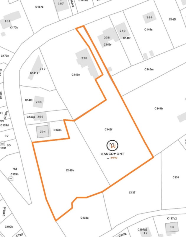 Opportunité à saisir! Vaste parcelle de terrain, en zone dhabitat (avec une petite pointe en zone verte), dune superficie denviron 7.009 m² (daprès matrices cadastrales récentes). Ce terrain bénéficie dune longue façade à rue (à droite du n° 204 lorsque lon est face au terrain) et dun second accès entre les numéros 230 et 238) dune largeur denviron 4m50 (environ 7m de largeur au départ de la rue de Beyne et ensuite se rétrécit à 4m50). Ce terrain est approximativement représenté sur les photos annexées. Ce terrain offre de belles possibilités (sous réserve dobtenir les autorisations nécessaires). Références cadastrales : section C, numéros 0143FP0000 et 0140KP0000. Libre de constructeur et darchitecte. R.C. : 69€. Informations données à titre indicatif et non contractuelles. Belle situation! www,waucomont.be